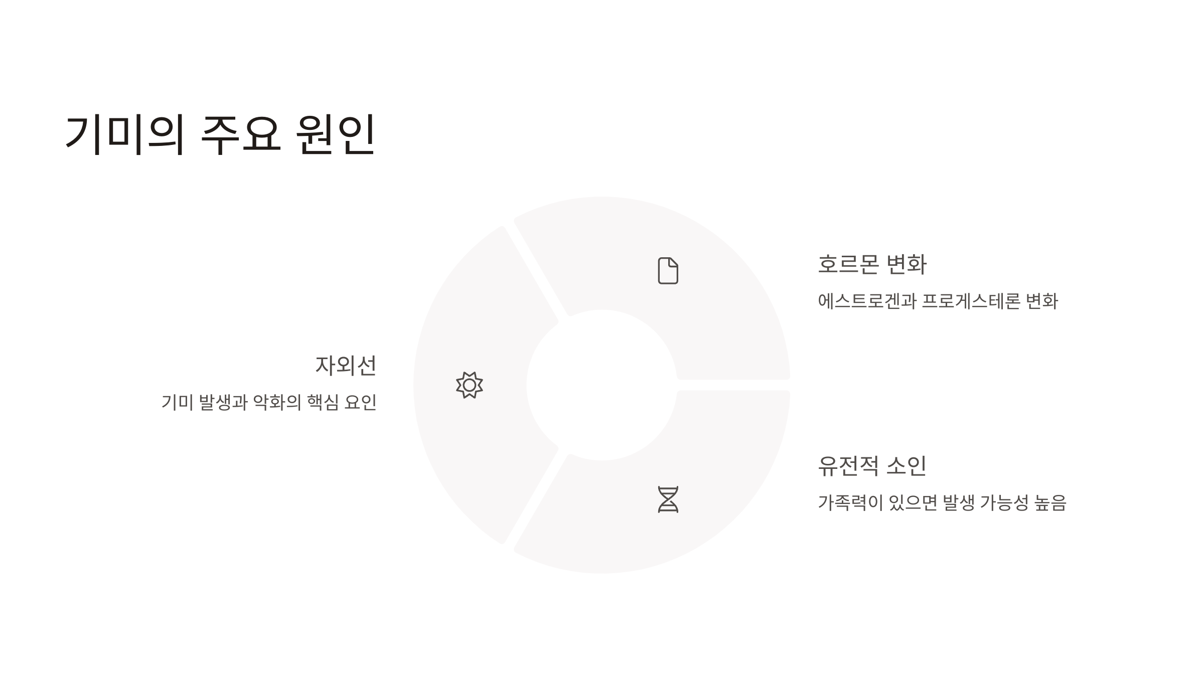가족력도 중요한 요인 중 하나예요. 부모나 형제자매 중에 기미가 있다면 본인도 발생할 가능성이 높습니다.