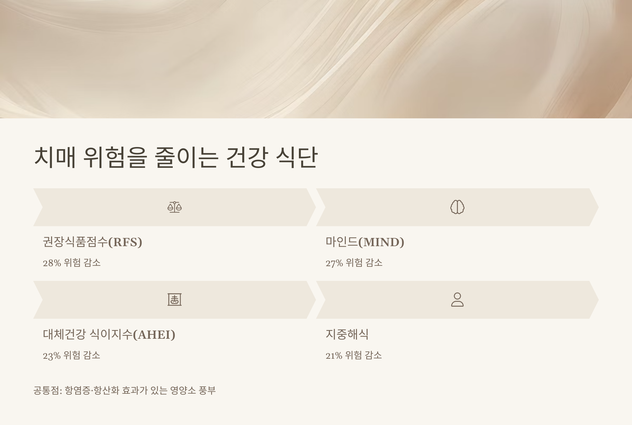 더욱 놀라운 것은 이런 식단 효과가 치매뿐만 아니라 경도인지장애 예방에도 동일하게 나타났다는 점입니다. 경도인지장애는 치매로 진행되기 전 단계로, 이 시기부터 관리하면 치매 진행을 늦추거나 막을 수 있습니다.