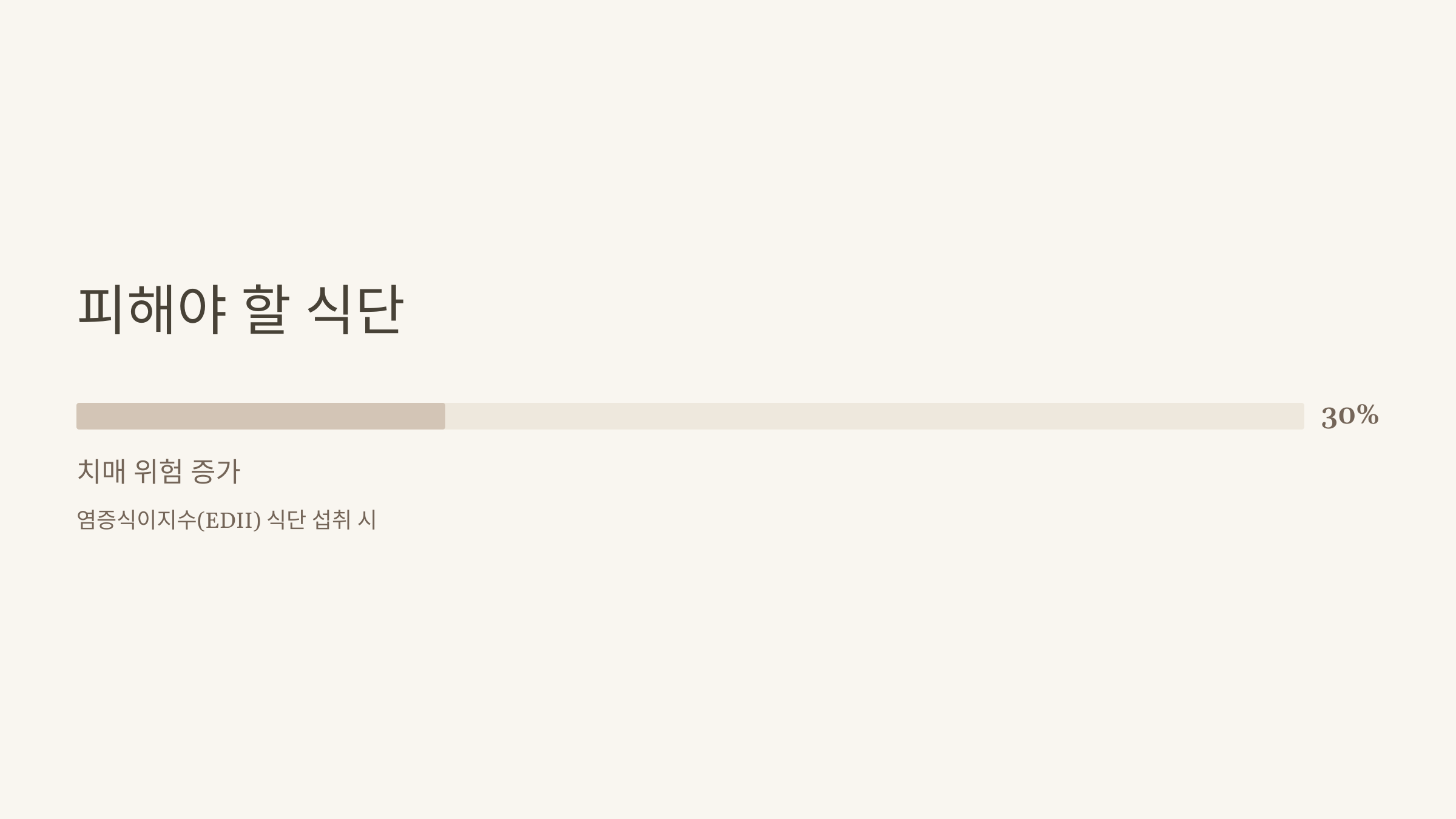 연구에서 흥미로운 점은 건강하지 않은 식단의 영향도 함께 조사했다는 겁니다. 염증식이지수(EDII) 식단, 즉 염증을 유발하기 쉬운 식품들로 구성된 식단을 자주 섭취한 그룹은 오히려 치매 위험이 30% 증가했습니다.