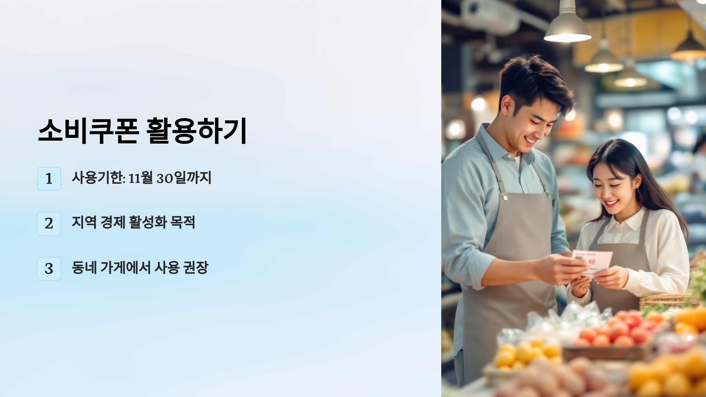 민생회복 소비쿠폰은 단순히 할인 혜택을 넘어서 지역 경제 활성화를 위한 정책입니다. 큰 기업보다는 우리 동네 작은 가게들을 이용해달라는 정부의 메시지가 담겨 있어요.